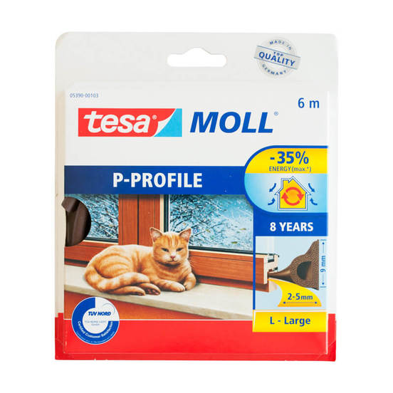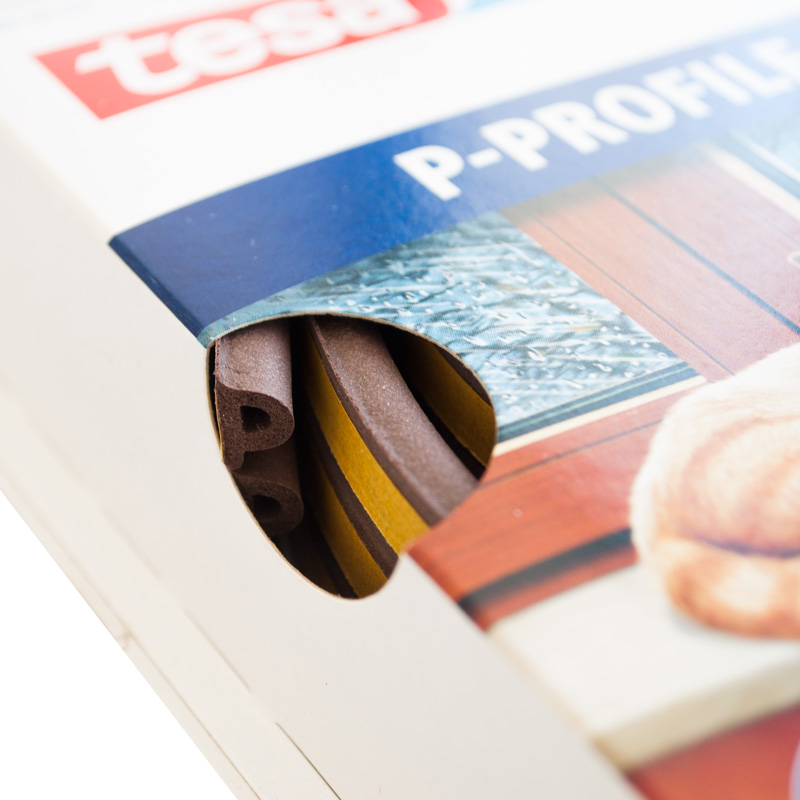 Уплътнение TESA с P профил, подходящо за уплътняване на пролуки от 2 до 5мм. Предназначен е за поставяне на врати и прозорци с цел по-добро уплътнение при затваряне и съответно по-добра изолзция. Устойчив на неблагоприятни атмосферни влияния и UV лъчи. Устойчив е на температурни промени от порядъка на -30°С до +80°С.