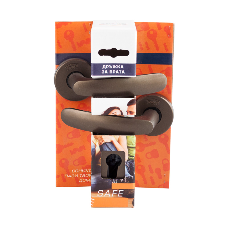 Секретна дръжка за врата SONICO от серия Силистра с розетка в цвят антик. Комплект от 2 бр. Дръжката е предназначена за монтиране на врати със секретна брава. Вратите могат да бъдат интериорни и екстериорни - дървени, PVC и метални.