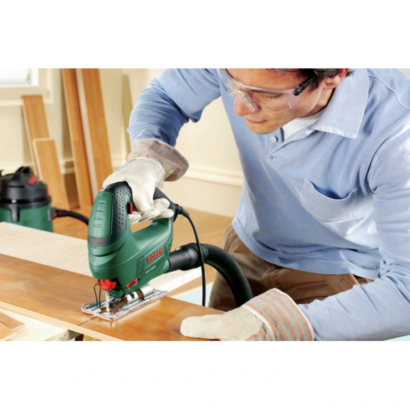 Този модел е оборудван с удобна функция за обдухване на зоната на рязане, която позволява отлична видимост върху линията на среза, а адаптерът за прахоулавяне допринася за чиста работна среда. Металната основна плоча е подсилена за по-голяма стабилност и безопасност, а възможността за рязане под ъгъл до 45 градуса добавя допълнителна гъвкавост и прецизност при работа. Bosch PST 650 е идеален избор за любители и домашни майстори, които искат съчетание от мощност, лекота и практичност в един компактен инструмент.