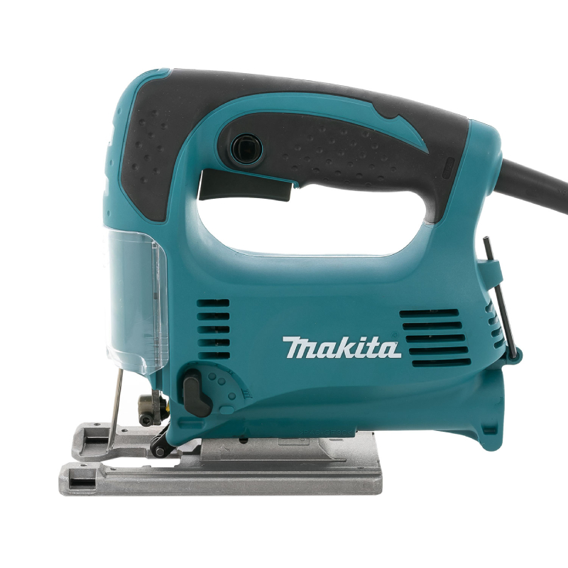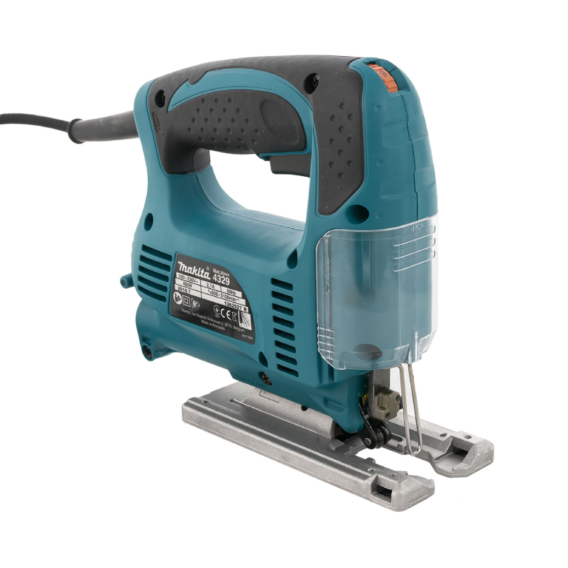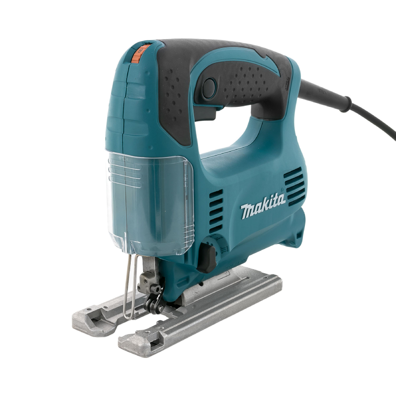 Прободният трион Makita 4329 е мощен и удобен инструмент, създаден да осигури прецизно и ефективно рязане на различни материали като дърво, алуминий и стомана. С мощност от 450 W и регулируеми обороти в диапазона 500 - 3100 об./мин., този зеге предлага плавно управление и адаптация към различните задачи. Четиристепенното махално движение позволява бързо и чисто рязане, а ходът на ножа от 18 мм гарантира стабилност и дълбочина при работа. Основата на триона е алуминиева и се накланя до 45° наляво и надясно, което дава възможност за изработка на рязане под ъгъл и повишава гъвкавостта на инструмента.