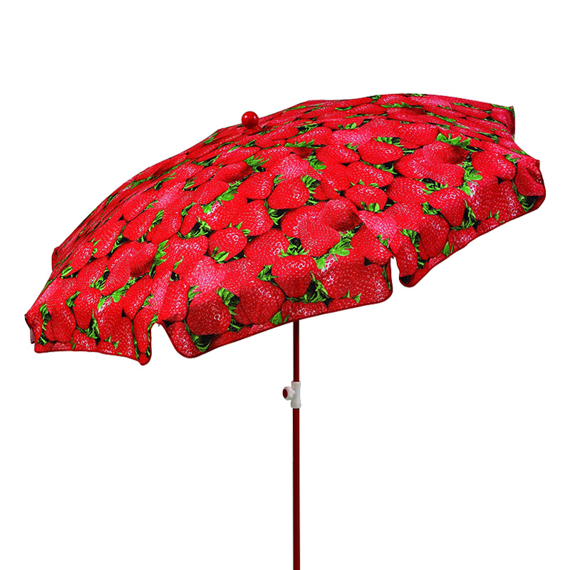 Градински чадър Rom 200/8 на марката SCHNEIDER с щампа ягода. Чадърът е с диаметър ф200см и височина 215см. Конструкцията му е метална, а платното е изработено от 100% водоотблъскващ полиестер. Профилът на чадъра е с диаметър ф2.2/2.5см и е прахово боядисан. Притежава висока степен на UV защита - фактор 50+.