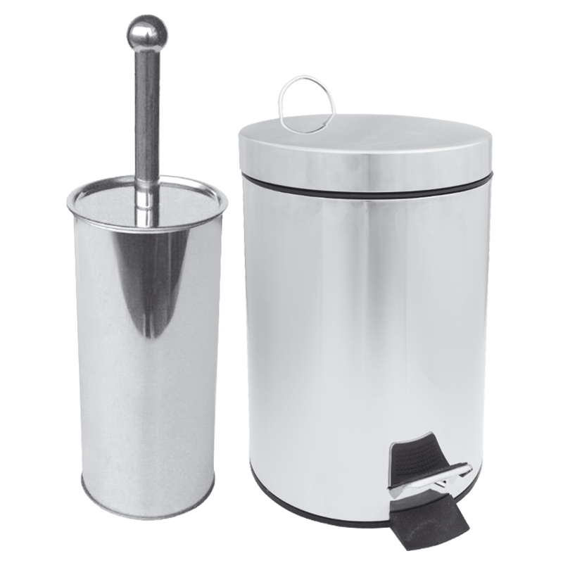 Продуктът представлява комплект за тоалетна от кош и WC четка. Кошът е с вместимост 3 литра и е изработен от алуминий с хромирано покритие, което е надежден щит срещу ръждата. Дръжката на четката, както и поставката за нея са изработени от същия материал. Комплектът е със стилен дизайн, който го прави желан аксесоар за всяка баня.