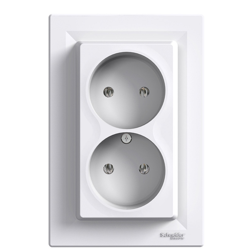Двоен електрически контакт с декоративна рамка SCHNEIDER ELECTRIC от серията ASFORA е предназначен за вграждане със скрит монтаж в единична конзола. Начинът на монтаж на двойният електрически контакт се осъществява чрез винтове. Номинален ток 16А, напрежение 230V и максимална мощност 3500W. Работната честота на двойният електрически контакт за скрит монтаж е 50Hz и има степен на защита от влага IP20. Електрическият контакт е изработен от пластмаса в цвят бял.