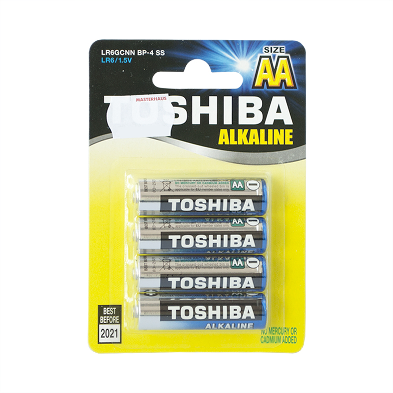 4 броя алкални батерии TOSHIBA, модел LR6 с номинално напрежение на всяка от батериите по 1.5V.