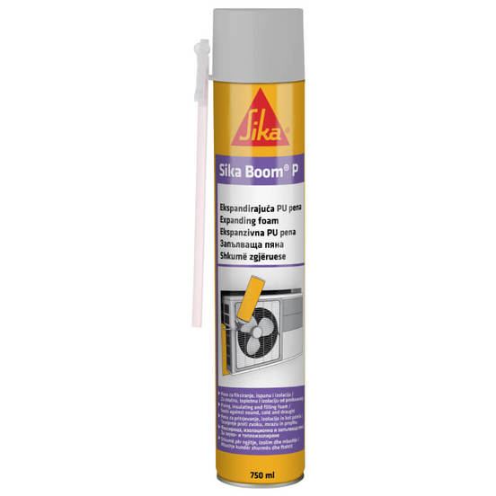 Полиуретанова пяна SIKA Boom P, предназначена за нанасяне върху бетон, строителен разтвор, азбестоцимент, тухла, гипс, керемида, дървомонтаж и други.