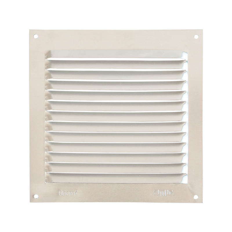 Алуминиева вентилационна решетка с винтов монтаж и с размери 150 x 150мм на марката AMIG. Алуминиевата вентилационна решетка предлага максимален въздухопоток до 66 куб.см.
