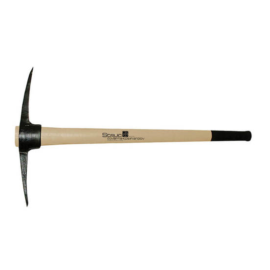 Кирка с удобна дървена дръжка на словенската марка STRUC. Инструментът е изработен от висококачествена стомана, която е гаранция за неговата дълготрайност и издръжливост при интензивна употреба. Дървеният сап също е много здрав. Кирката е с дължина 90см и тегло 2.0кг.