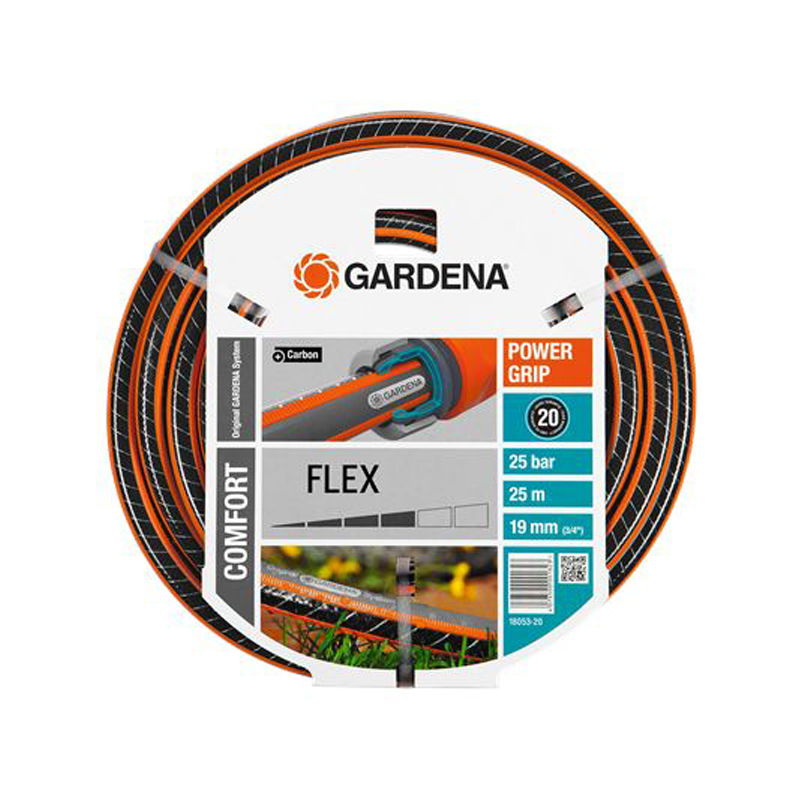 Маркуч от серия Comfort Flex на марката GARDENA. Маркучът е с профил Power Grip, който гарантира перфектната му връзка с конектор благодарение на нова технология, наподобяваща връзката на зъбни колела.