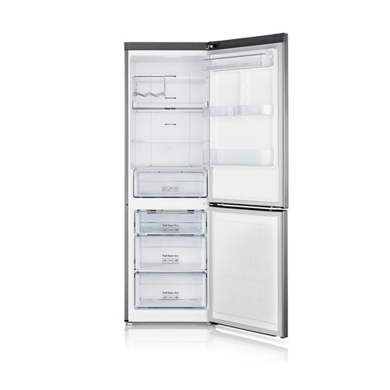 Хладилникът с фризер на SAMSUNG предлага и още едно удобство, което липсва при обикновенните конвенционални хладилници, а именно кутията с пълно отваряне, която може да се изважда напълно за оптимално удобство дори при отворена на 90° врата на хладилника. Удобното отделение „Грабни и бягай“ е предназначено за съхраняване на подправки и сосове. Намира се на вратата на хладилника и много бързо може да се извади заедно със сосовете в него. Хладилникът с фризер RB31 FERNDSA на SAMSUNG, благодарение на цифровата инверторна технология, е много икономичен и почти безшумен. Има 5 цикъла на работа, което спомага за бавното износване на хладилника и правилното охлаждане.