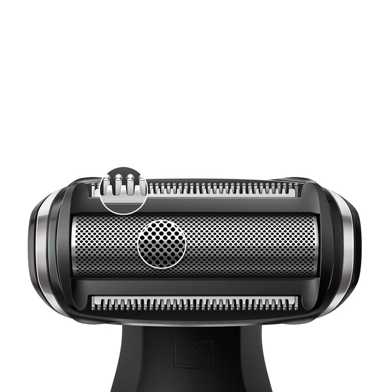 Бръснещите пластини на уреда са с хипоалергенно покритие и патентовани седефени краища, с които предотвратяват възпаления на кожата и осигуряват надеждно бръснене на тялото. Тримерът за тяло е на 100% водоустойчив, което го прави идеален за използване под душа. Почиства се лесно и бързо.