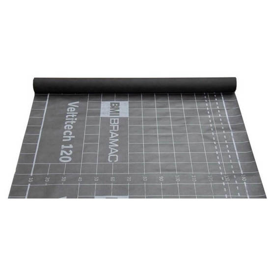Паронепропускливо подпокривно фолио BRAMAC VELTITECH 120 за покривни конструкции без дъсчена обшивка и необитаемо подпокривно пространство. Паронепропускливото подпокривно фолио VELTITECH 120 е значително по-леко от битумните материали и затова се полага по-лесно и по-удобно.