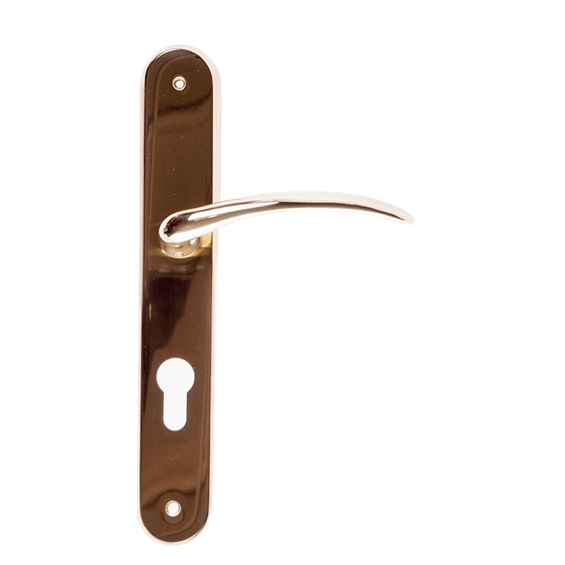 Секретна дръжка за врата INTESA от серия Тема с междуцентрие 70мм и цвят месинг. Дръжката е предназначена за монтиране на врати със секретна брава. Вратите могат да бъдат интериорни и екстериорни - дървени, PVC и метални.