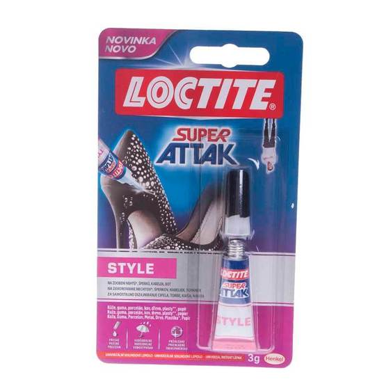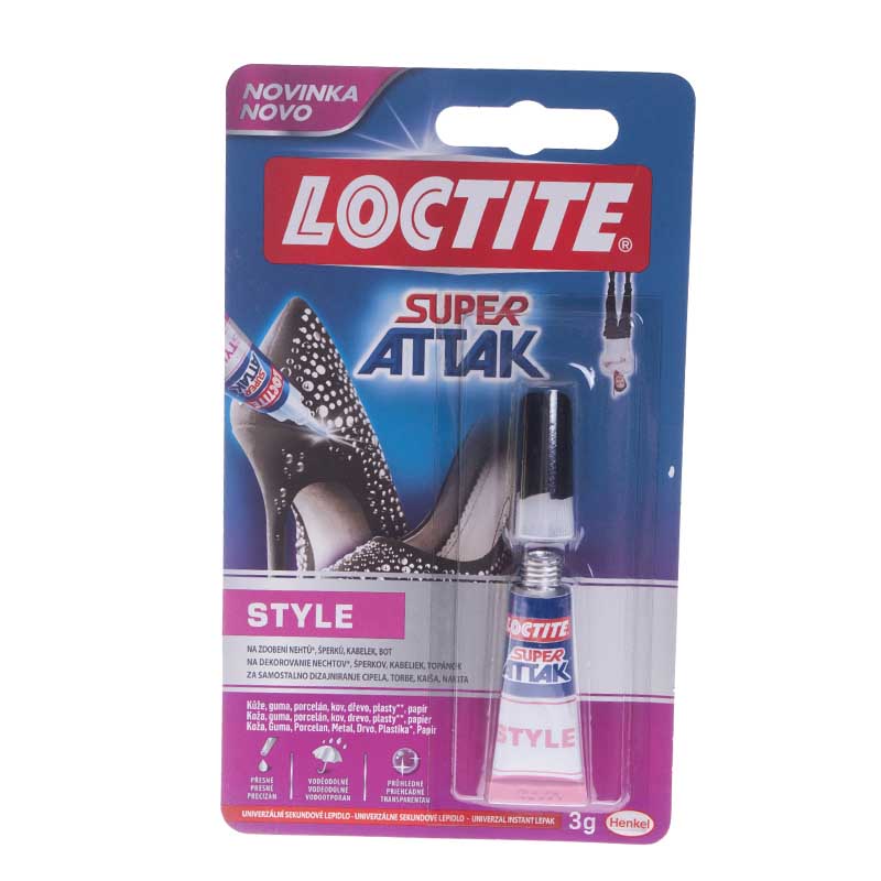 Моментно лепило Super attak style на LOCTITE подходящо за здраво лепене на гума, кожа, дърво, метал, порцелан, хартия и пластмаса.