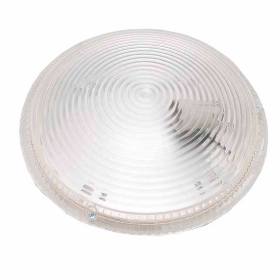 Осветително тяло МАРЕЛИ G65 с размер Ф260мм, мощност 1 х 60W и цокъл 1 х E27. Влагоустойчивият плафон е подходящо осветление за открити тераси, входове на жилищни сгради, козирки, межуетажни пространства и др.