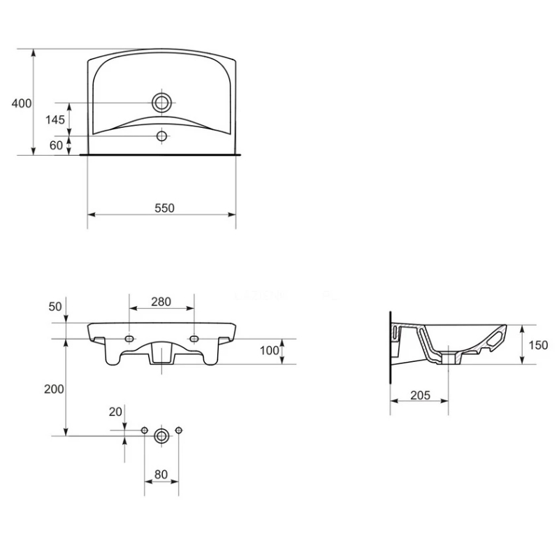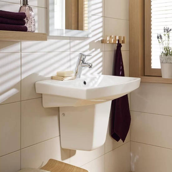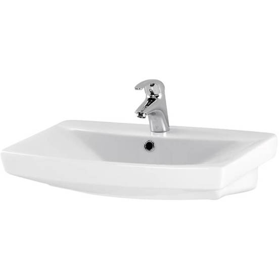 Керамична мивка за баня от серия Carina на марката CERSANIT. Мивката за баня е с размер 55 см. Разполага с централен отвор за стоящ смесител, който е със стандартен размер Ф35 мм. Керамичната мивка е снабдена също и с преливник.