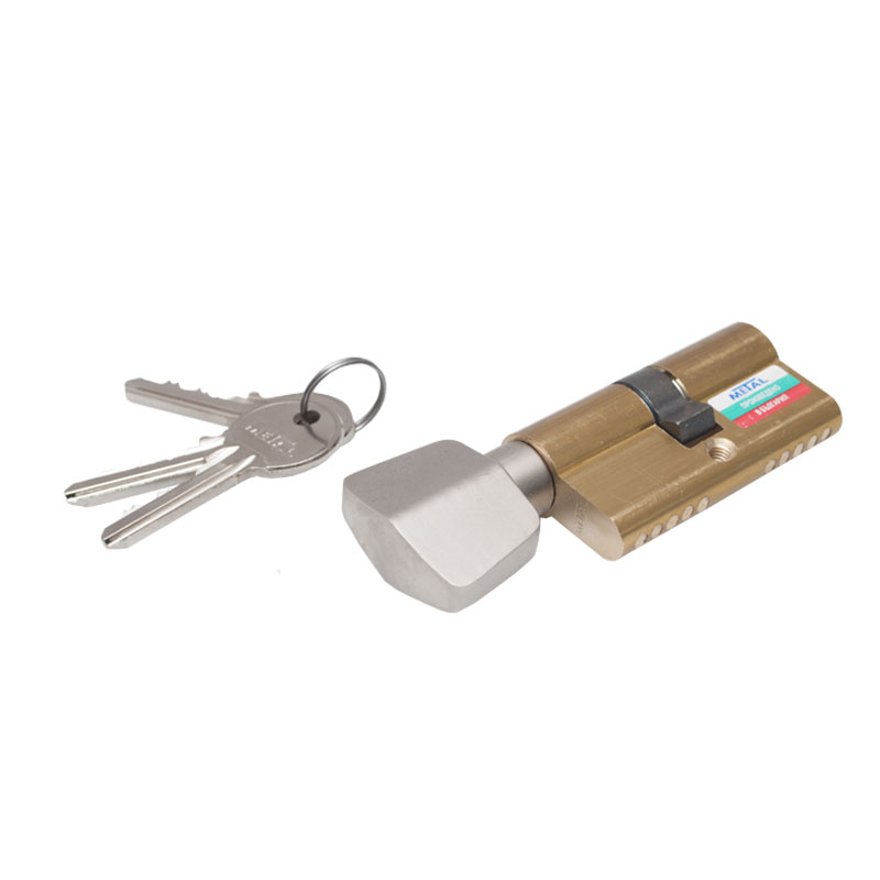 5-щифтова секретна ключалка МЕТАЛ с ръкохватка и европрофил на ключа. Корпусът и роторите на ключалката са изработени от месинг с покритие от никел. Ръкохватката е изработена от цинк и алуминий с никелово покритие. Секретният патрон предлага 62 780 броя комбинации на заключване. В комплекта са включени 3 ключа.