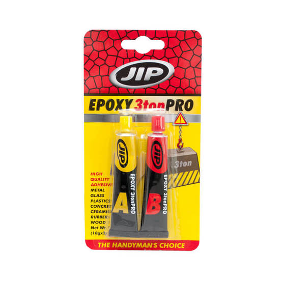 Суперздраво епоксидно лепило H001 на марката JIP. Лепилото се предлага в блистер 2 х 10г. Може да издържи на натоварване до 3 тона на квадратен метър.