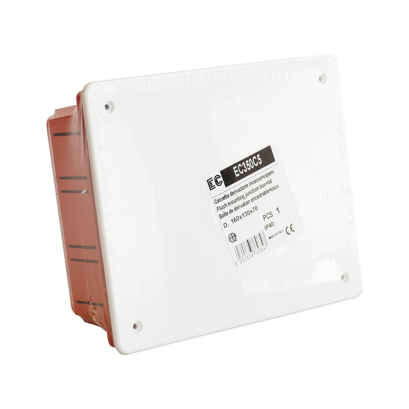 Разклонителна кутия за скрит монтаж, изработена от висококачествена пластмаса. Тя служи за свързване на електрическа мрежа, която се поставя при строително-ремонтни дейности. Кутията за скрит монтаж може да се фиксира с разтвор на циментова основа, алабастър или винтове, в зависимост от вида на стените. Размерът на кутията за скрит монтаж е 160 х 130 х 70мм.