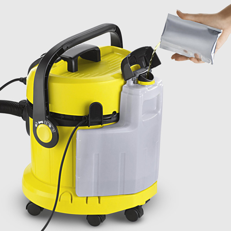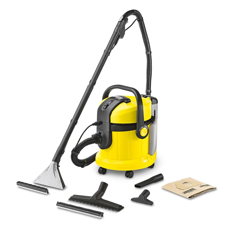 Перяща прахосмукачка KARCHER SE 4001. Перящата прахосмукачка може да се използва за сухо и мокро почистване и е с висока мощност 1400W. Многофункционалният модел на KARCHER разполага с 3 пластмасови контейнера: за събиране на отпадъци, за чиста вода и за мръсна вода. Общият капацитет на резервоарите е 18 литра. Благодарение на разпределението на водата ще предотвратите разнасянето на замърсяванията по подовете или килимите. Резервоарът за чиста вода е с вместимост 4 литра. Прахосмукачката дава възможност за почистване на килимите в дълбочина.