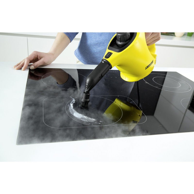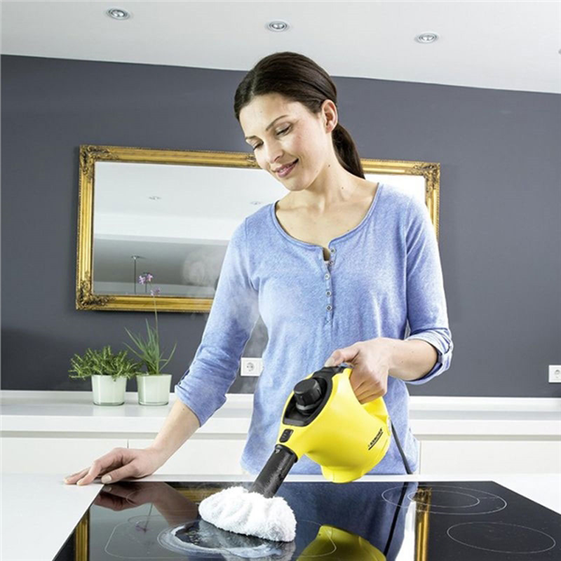 Парочистачка SC1 на KARCHER е с висока мощност от 1200W, резервоар за вода с вместимост 250мл, защита от деца и 3 Bar налягане за отстраняване на дори и най-наслоените замърсявания по фугите в банята, смесителните батерии, готварските печки и други. Благодарение на удължителите, допълнителните принадлежности и накрайници, парочистачка SC1 KARCHER ще се справи без проблеми с почистването на труднодостъпни места като ъгли и ръбове, а със своите компактни размери (Д х Ш х В) 230 х 127 х 185мм може да се съхранява там където е най-необходима.