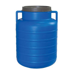 Пластмасов бидон на марката МОМИНА КРЕПОСТ без включен към него кран/канелка за източване на течности. Бидонът е с вместимост 50 литра. Отворът е с диаметър 25.6см.
