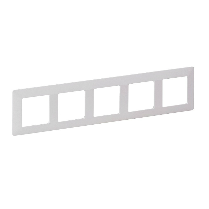 Декоративна петорна рамка-модул за ключове и контакти от серия VALENA LIFE на LEGRAND. Декоративната рамка за ключове и контакти е изработена от пластмаса в цвят бял.