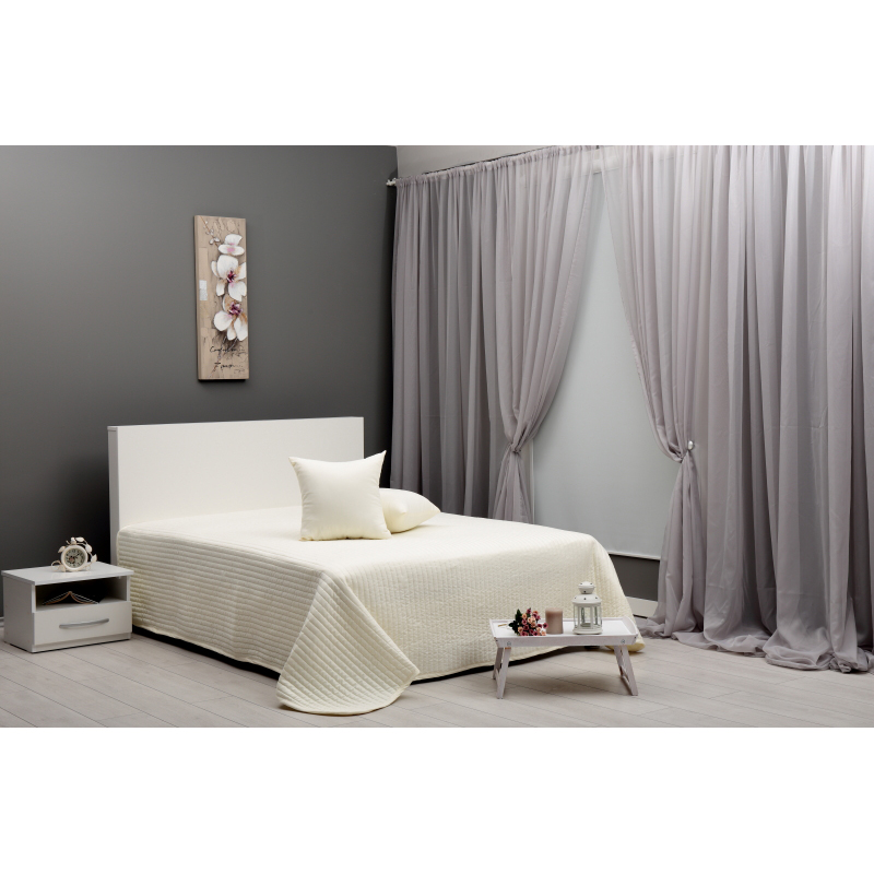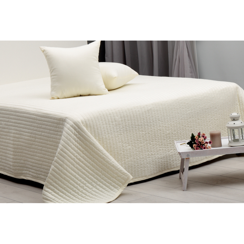 Шалте за спалня с размери 230 х 240см. Покривката за легло е изработена от 100% микрофибър в цвят екрю на райета.