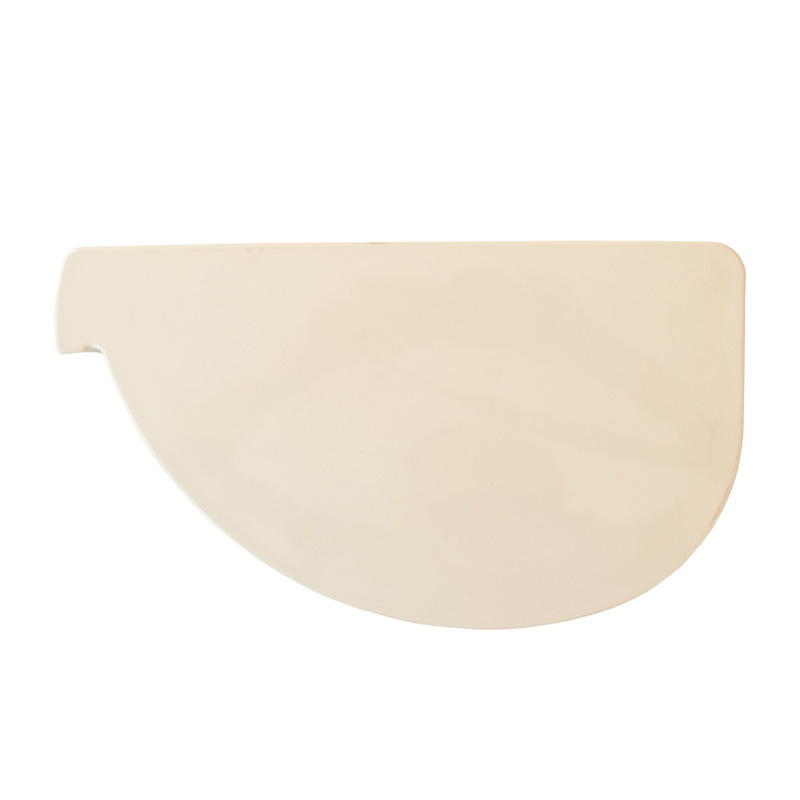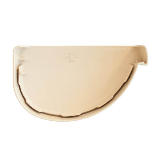 Дясна тапа за улук от серията LG29 на марката NICOLL в цвят пясък. Тапата за улук, както и всички останали елементи от системата за отводняване на покриви, са изработени от висококачествени PVC материали и с контрол на качеството. Като допълнение към характеристиката на тапата за улук е лесният и бърз монтаж чрез система с лепене.