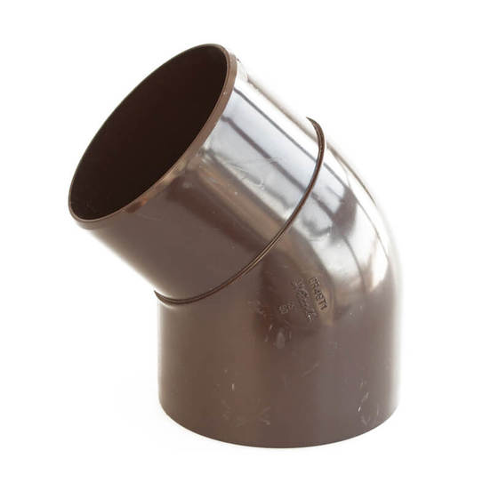 Коляно 45° ф80мм за водосточни тръби от серията LG29 на марката NICOLL в цвят кафяв. Коляното е с присъединяване Ж-М. Изработено е от висококачествен PVC материал, към който са добавени титанов окис и пигменти за подсилване на цветовете.