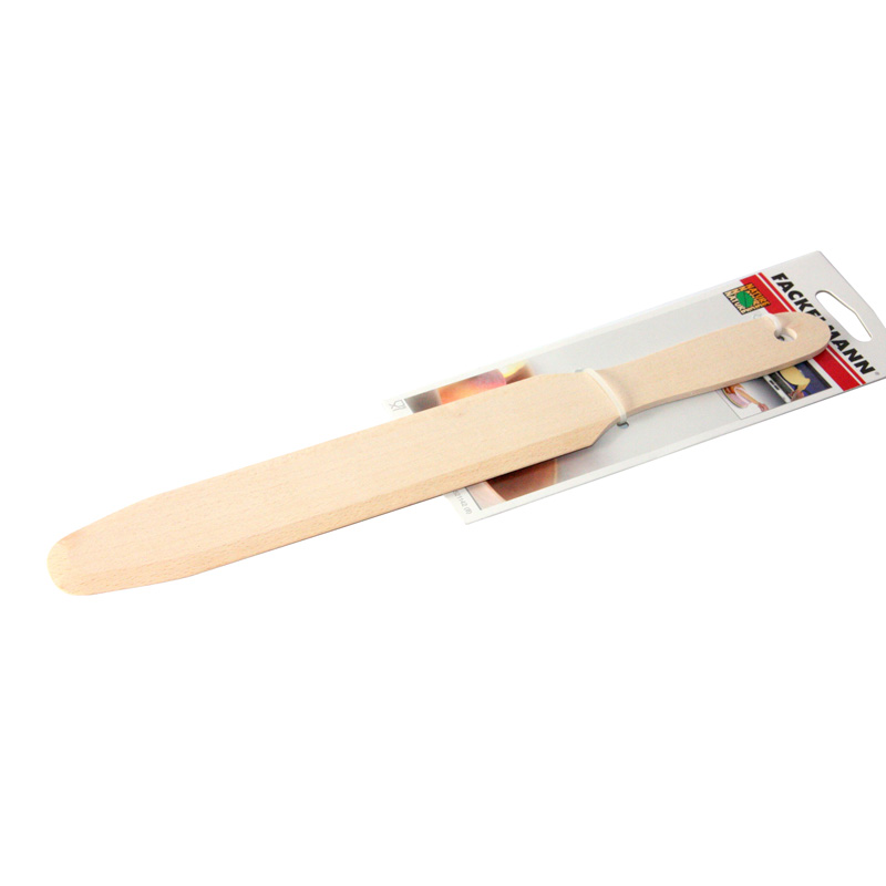 Дървена кухненска шпатула на марката FACKELMANN. Приборът може да се използва при готвенето на различни видове ястия, както и при разбъркването на салати. Дължината на шпатулата е 35см. Кухненският прибор е с улей в областта на дръжката, което улеснява боравенето с него. На самата дръжка на дървената шпатула има и отвор за закачане. Поддържането и почистването на кухненското пособие е изключително лесно, може да се мие и в съдомиялна машина. Шпатулата се съчетава най-добре с останалите прибори на марката, с които оформя стилна кухненска конфигурация.