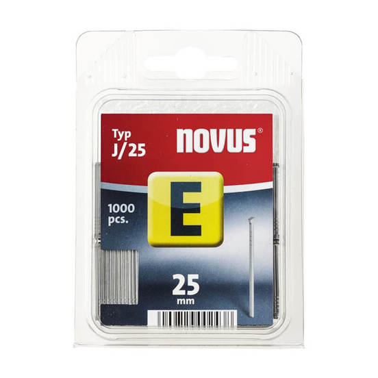 Пирони за такер, произведени от немската компания NOVUS. Пироните са от типа J, като моделът 076 SNL 081 се предлага в опаковка от 1000 бр. Видът на пирона е J25, намиращ широко приложение в ремонтните дейности, мебелната промишленост и др.