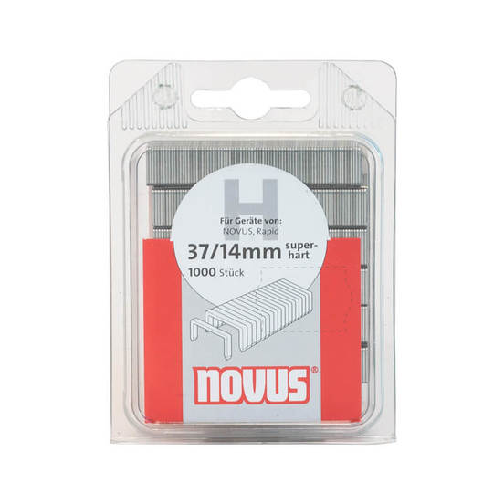 Скоба за такер, от типа 11, производство на немската компания NOVUS. Продуктът се предлага в комплект от 1000 бр., като разновидността на скобата е H. Кламерът за такер е направена от плоска тел. Нейното приложение е за закрепване на редица материали, от вида на хартия, фолио, картон, различни видове хартии, направени от восък и масло, етикети, както и за алуминиево каширане. Широчината на скобата за такер е 10.6 мм., а дебелината е определена на 0.75 мм. Общата дължина на модела е 14 мм.