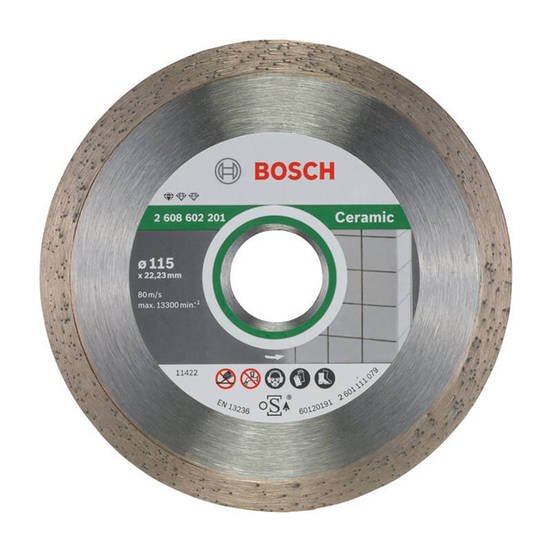 Диамантен диск, произведен от BOSCH. Консумативът за рязане е част от серията на компанията, предназначена за обработване на керамични плочки. Серията се нарича Ceramic, а този диск е един от най-изгодните варианти, по отношение на цена-качество.