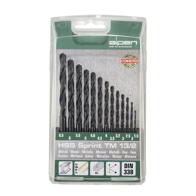 Комплектът от 13 броя бургии или още наречени Свредла за метал, са произведени от австрийската компания ALPEN, доказала себе си във времето с изключително качествени аксесоари и консумативи за пробивни машини.