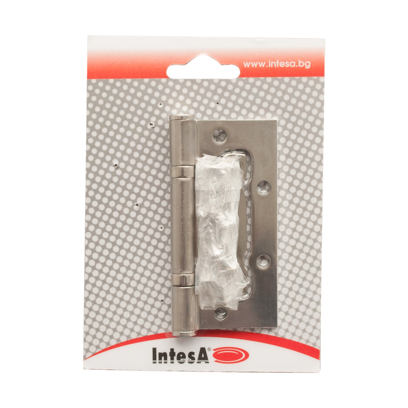 Пантата е предназначена за безфалцови врати, които са от типа "пеперуда". Моделът на INTESA е подходящ за рамки, при които няма разстояние между вратата и касите. При безфалцовите врати, фугата между крилото и рамките остава видима и непокрита. Подобна панта се поставя, предимно на рамки в жилищни или сервизни помещения. Размерът на пантата е определен на 100 х 72мм, като тя се предлага с лагери, осигуряващи нейната по-висока ефективност. Цветът на консуматива е инокс, което я прави особено подходяща за поставянето й на по-светли врати.