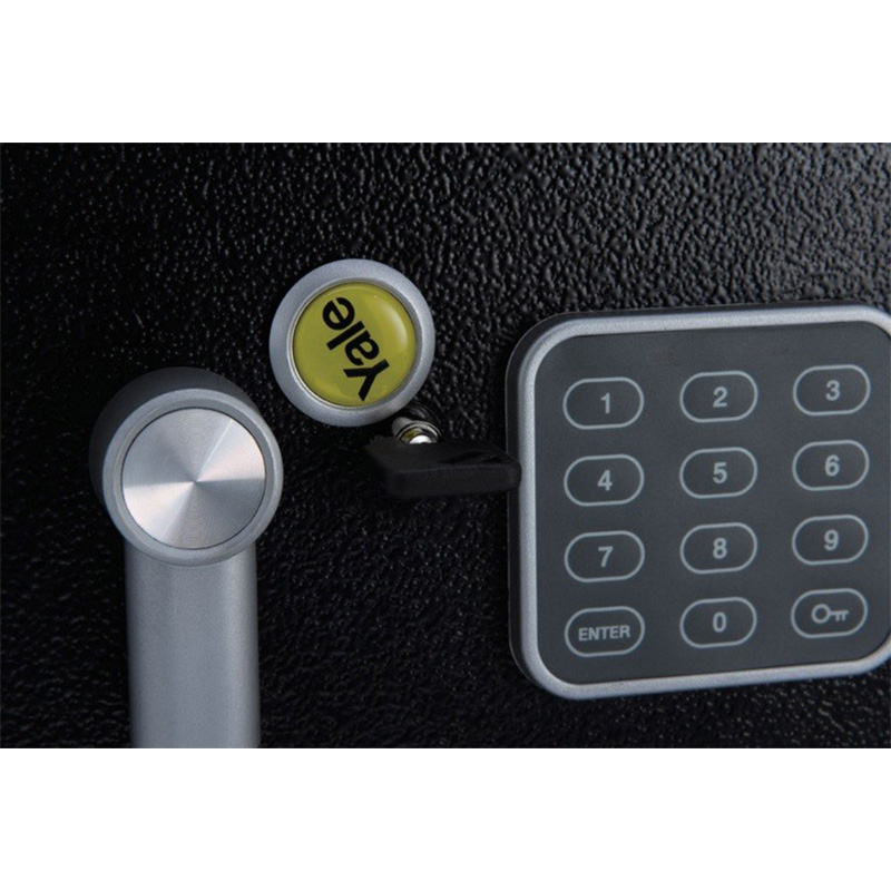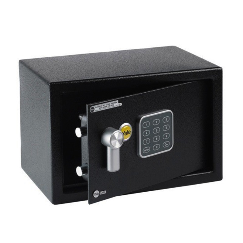 Сейф с електронен механизъм, произведен от фирмата YALE. Моделът YSV/200/DB1 е с габаритни размери 200 х 310 х 200мм, вътрешни размери 190 х 300 х 150мм, клавиатура за въвеждане на парола за отключване, секретна дръжка, два хоризонтални шипа и скрити панти.