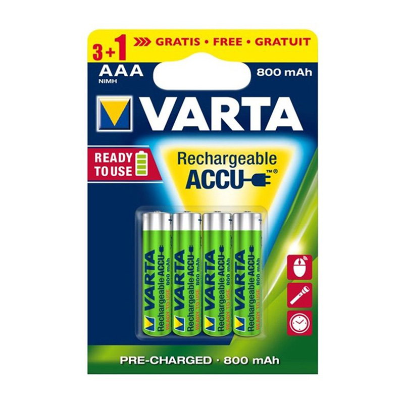 Комплект от 4 броя акумулаторни батерии R03 от типа AAA. Всяка от батериите е със заряд от по 800mAh. Батериите са посходящи за многократна употреба, поради факта, че могат да бъдат презаредени след като се изтощят. Акумулаторните батерии са подходящи за използване с различни устройства – детски играчки, часовници, дистанционни, компютърни мишки, фенери и много други.