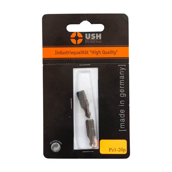 Битовете или накрайниците USH отговарят на най-високите изисквания за качество, благодарение на внимателния подбор на материали и строго контролирания производствен процес. Накрайниците за винтоверти и ръчни отвертки намират приложение при по-тежки задачи в сферата на монтажните услуги и промишлеността. Накрайниците са подходящи за завинтване на скрепителни елементи в метал, метални листове, дърво и други, използвайки винтоверти или ръчни отвертка.