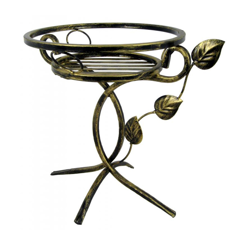 Стилен и красив метален цветарник с една стойка за саксии JAKPOL KWK-683. Изработен е изцяло от метална конструкция, като имитира по един превъзходен начин цветът на старо злато. Височината на металния цветарник е 42см, а поставката за саксии е с размери 19/28см.