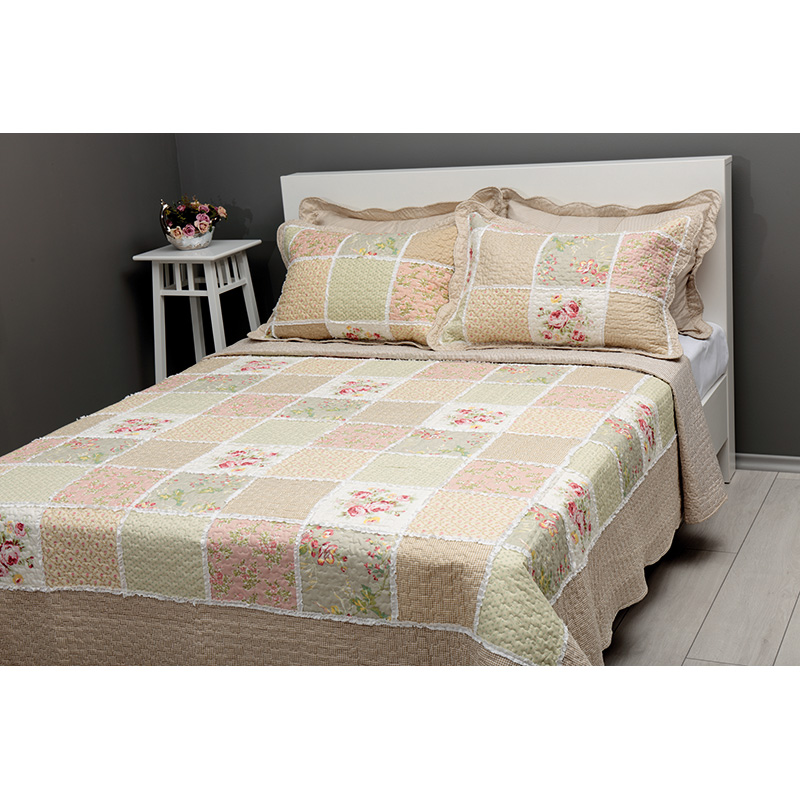 Двулицево шалте за спалня от серията Романтика с размери 220 х 240см в цвят оранж резеда. Шалтето е изработено по високи стандарти за качество. Лицевият плат е от 100% памук, а пълнежът - от 50% памук и 50% полиестер. Покривката за легло се отличава с висока трайност, гъстота, здравина и отлични хигиенни свойства.