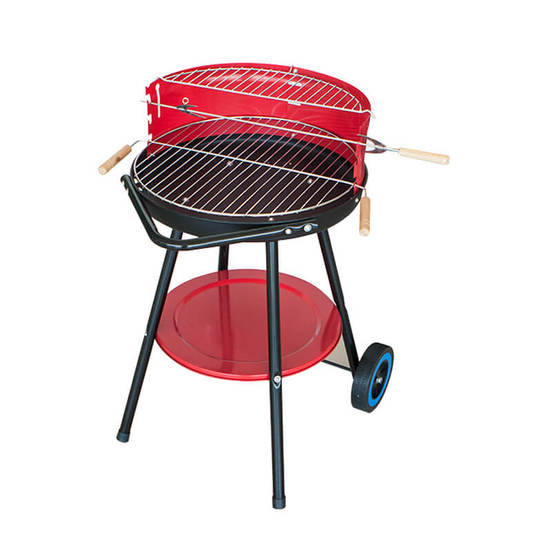 Високо градинско барбекю за дървени въглища с колелца за лесно придвижване и с размери 60 х ф40см. Високото барбекю разполага с два броя хромирани скари, емайлиран съд за въглищата, грил шиш и поставка. Подходящо е за вашия двор, градина или за пикник на открито сред природата.