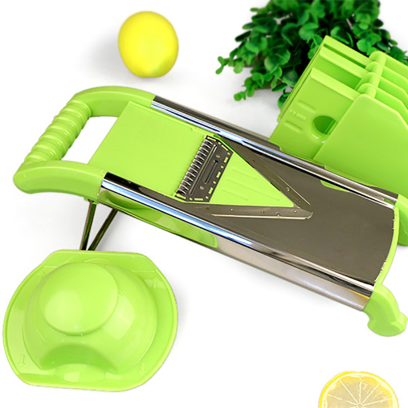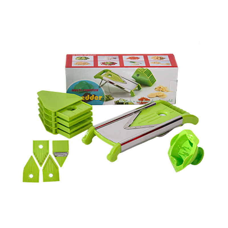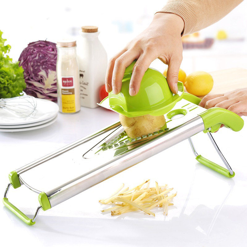 Кухненското пособие притежава изключително остър, лазерно заточен V-образен нож. Снабдено е със стабилни метални крачета с различна височина, за да може при употреба да се получи наклон, който осигурява удобство. Моделът има дръжка в ергономична форма за оптимално добър захват и ефективност при ползване. Рендето е в комплект с 5 ножа, с които можете да режете зеле, краставици, картофи на пръчици или къдрав чипс, моркови, ряпа, целина, ябълки и др.