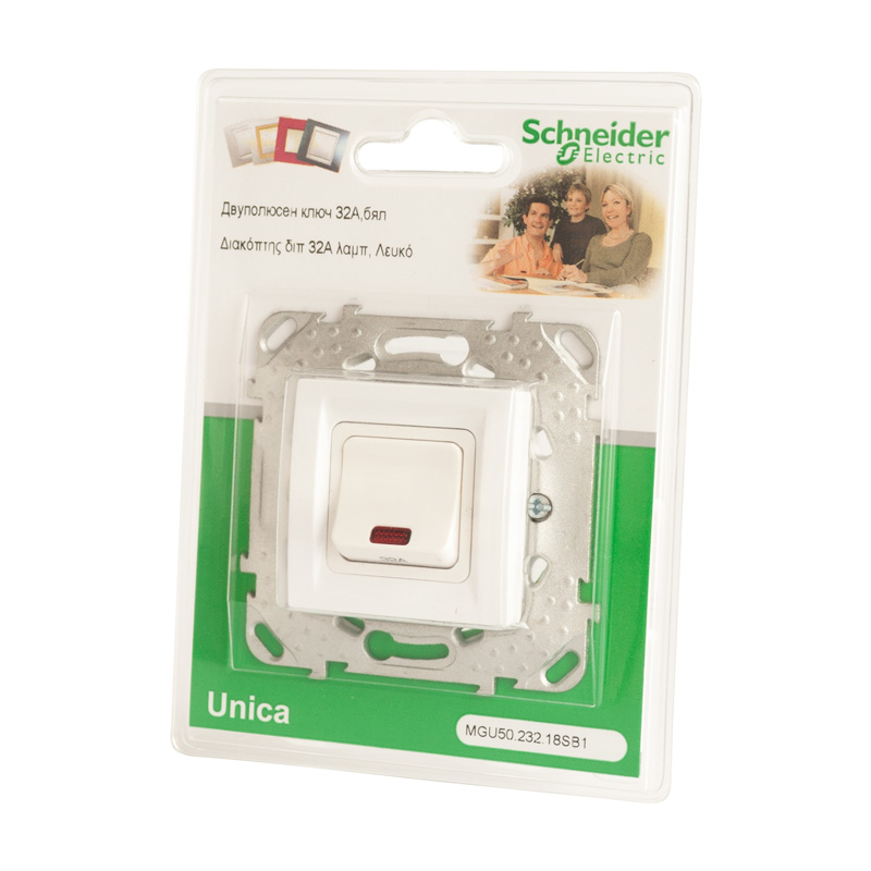 Единичен електрически ключ за бойлер без декоративна рамка и с индикаторна лампа цвят кехлибар SCHNEIDER ELECTRIC от серия UNICA. Двуполюсният бойлерен ключ позволява да бъде монтиран със скрит монтаж в конзола. Начинът на монтаж на електрическият ключ се осъществява чрез винтове. Бойлерният ключ е с номинален ток 32А. Моделът на SCHNEIDER ELECTRIC се предлага без декоративна рамка.