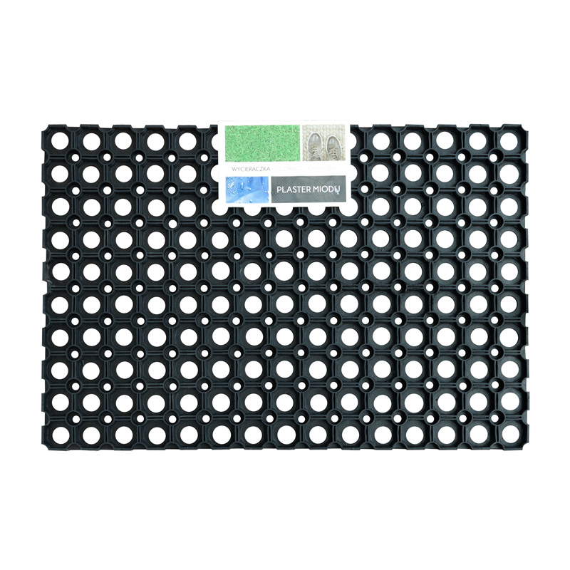 Изтривалка за входна врата, изцяло изработена от гума. Изтривалката е подходяща за поставяне пред входните врати на жилищни сгради, търговски обекти и други. Подходяща е също и за тераси и веранди. Размерът й е 100 х 150см. Устойчива е на влага, големи температурни промени, сол и UV лъчи.