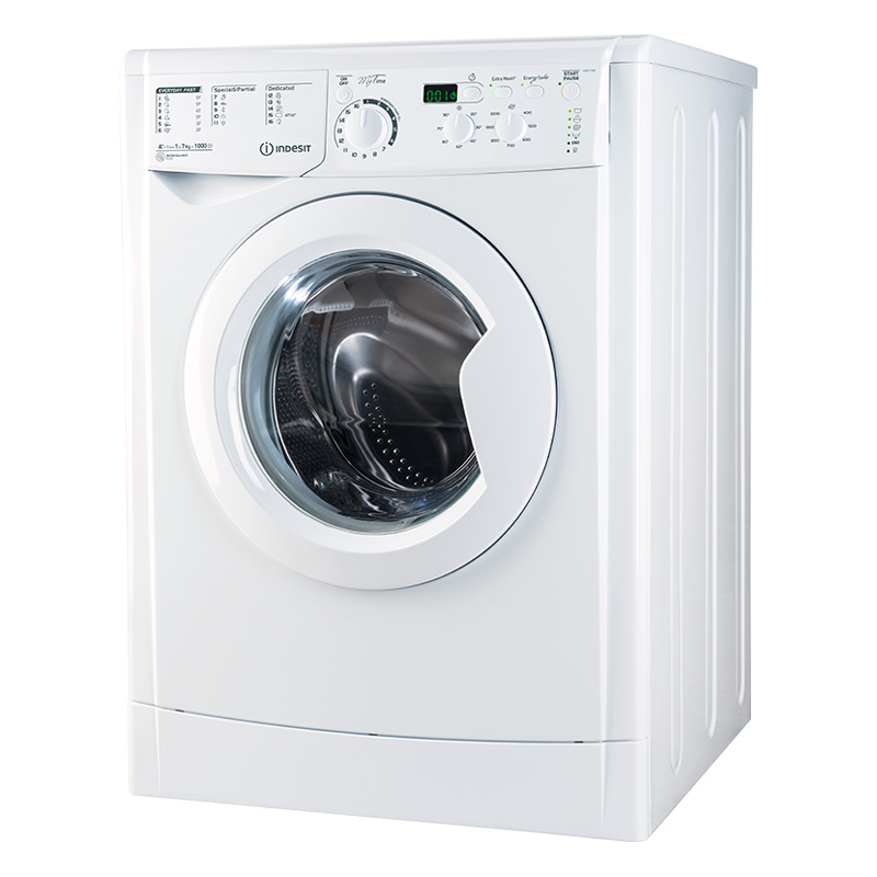 Перална машина INDESIT EWD 71051W EU с предно зареждане, опция Eco Time и опция Energy Saver. Пералнята INDESIT е с голям капацитет – 7 килограма, 1000об/мин на центрофугата и е от енергиен клас А+. Професионалните системи за изпиране на IN0DESIT могат да настроят продължителността на всеки цикъл. Пералня с предно зареждане INDESIT има функция Eco Time, с която вече не е необходимо да имате напълно заредена пералня. Тази опция се използва за изпиране на малко количество пране за кратко време. Изперете с лекота до 3кг леко замърсено пране от памук или синтетика за около 30% по-кратко време, спестявайки до 40% вода и енергия.