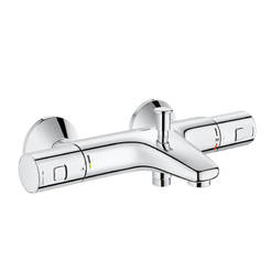 Термостатна стенна смесителна батерия за вана/душ с две ръкохватки от серия Precision Start на марката GROHE, произведена със системата CoolTouch, осигуряваща по-обезопасен корпус. Смесителят разполага с вграден термоелемент TurboStat. Моделът има функция за застопоряване на температурата на водния поток при 38°C, което осигурява безопасността на потребителите. Батерията е оборудвана с технологията GROHE EcoJoy, гарантираща съвършен воден поток за по-нисък разход.