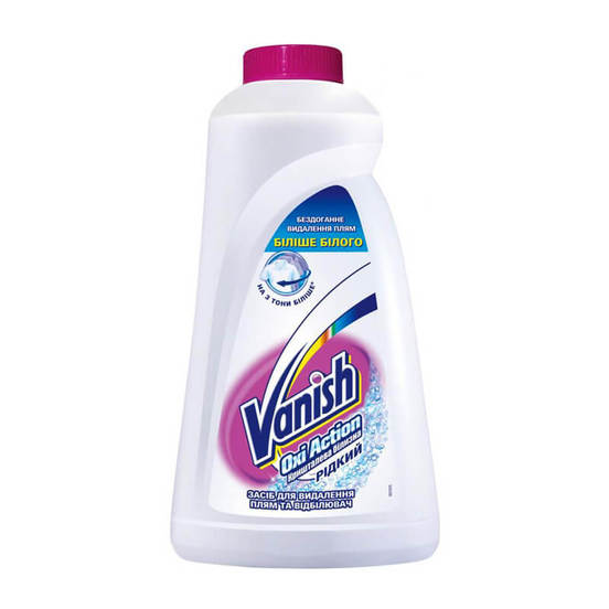 Течността на VANISH съдържа кислородна белина, благодарение на която ефикасно и трайно се премахват дори и по-упорити следи от замърсяване. Това може да стане и при по-ниски температури на изпиране.