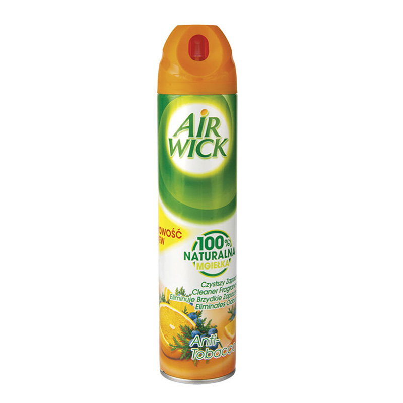 Ароматизатор във вид на спрей на марката AIRWICK. С антитабак ефект. Служи за освежаване на въздуха в жилищни и офис помещения, малки магазини и др. Притежава мигновено и дълготрайно действие. Освежава и ароматизира въздуха в помещенията, без да бъде натрапчив. Основното му предназначение е да неутрализира миризмата на цигарен дим, като оставя приятен аромат.