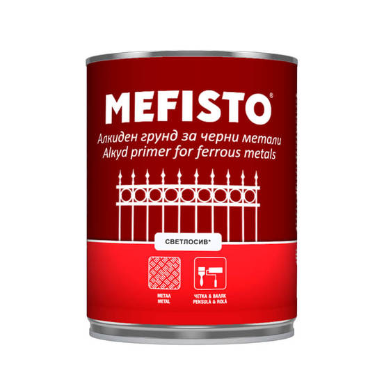 Алкиден грунд за стоманени повърхности Мефисто сив. Неговото приложение е за защита на нови и за репарация на стари повърхности от черни метали. Използва се и за грундиране на метални парапети, огради, строителни конструкции, резервоари и др. Служи и за експлоатация на закрито. Притежава добри запълващи и защитни свойства. Алкидният грунд се характеризира и с пригодност към шлайфане. Притежава добро поведение при съхранение – не образува сбита утайка.