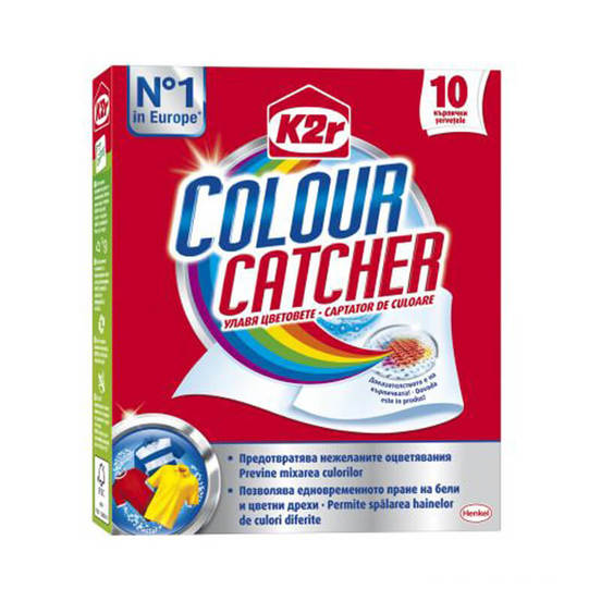 Цветоулавящи кърпички K2r на марката HENKEL в опаковка от 10бр. Предназначени за цветно пране. Кърпичките са направени от естествени материали, което ги превръща в биоразградими.